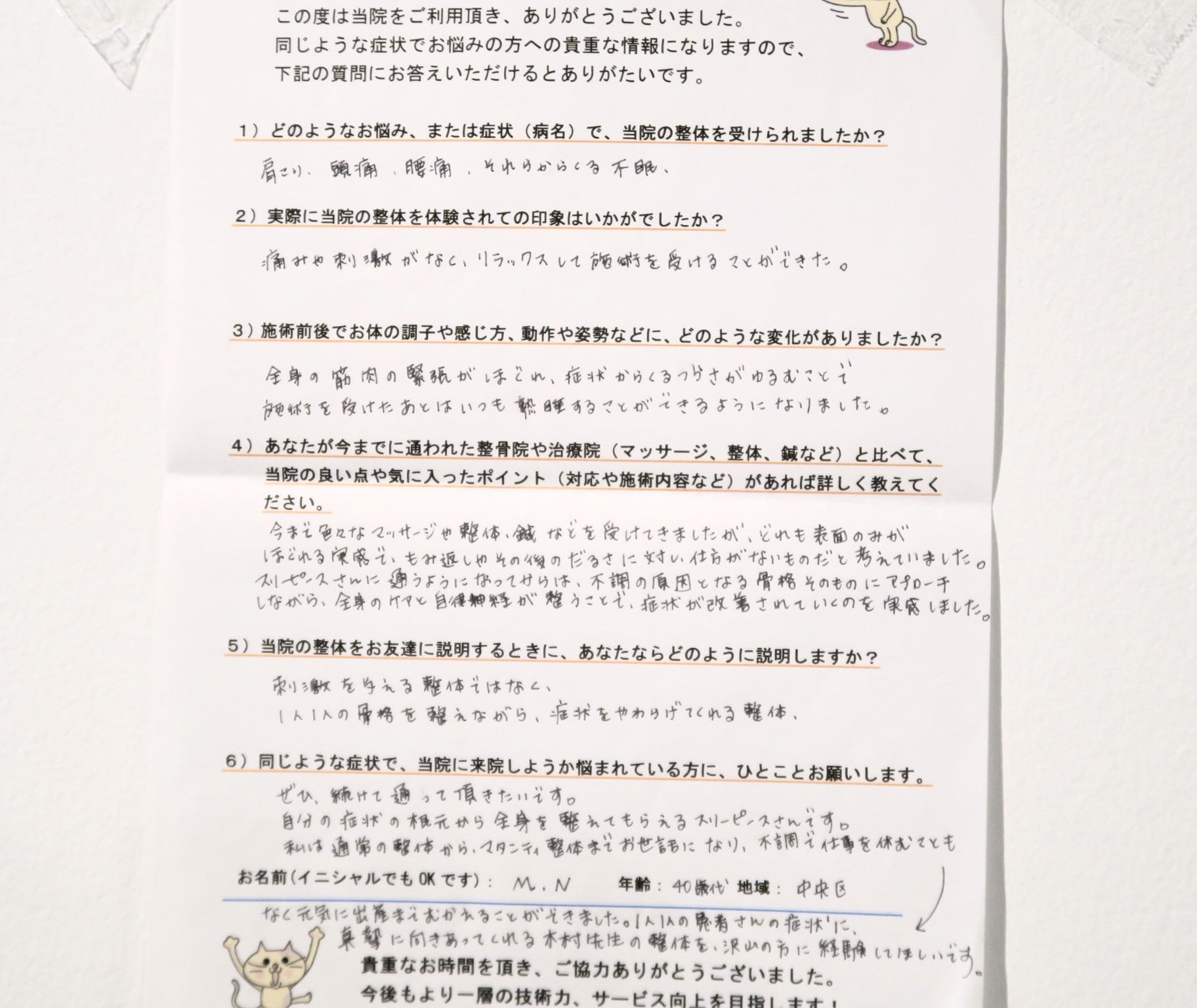 1人1人の患者さんの症状に真摯に向き合ってくれる木村先生の整体をたくさんの方に経験してほしいです。
